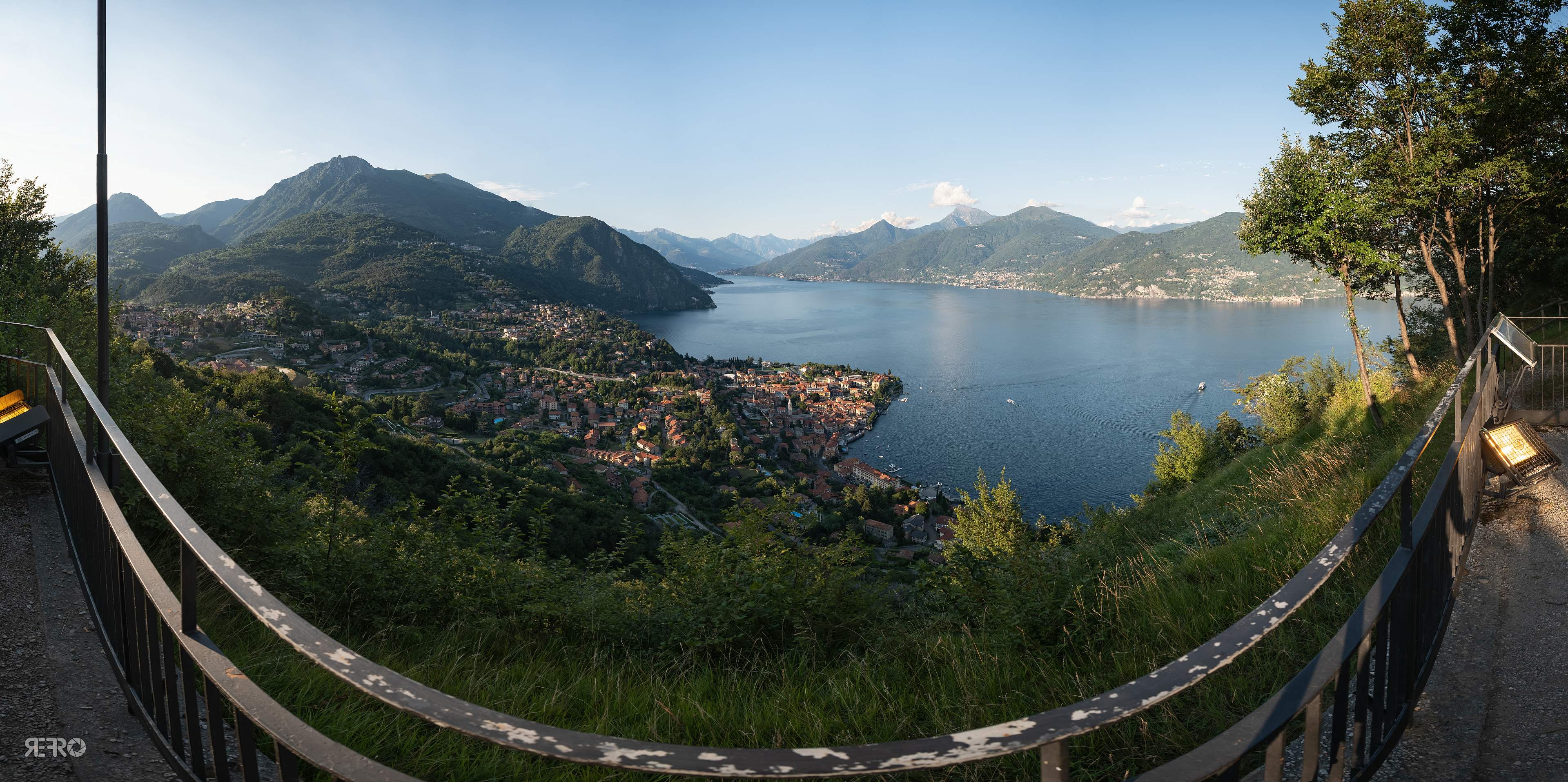 Von der Chiesa degla Alpini aus betrachtet sieht Menaggio aus wie eine in den See ausgelaufene Landmasse. Eine Verlängerung des westlich gelegenen Valle Menaggio, welche eine leicht passierbare Verbindung in Richtung Schweiz und Luganer See inmitten der doch recht imposanten Hügel- & Bergketten dieser Region darstellt, die den gesamten Comer See reih-um säumen. Der “Halb(insel)kreis” fungiert quasi als See-Aussichtsplattform und beherbergt den hübschen Ortskern und die schmucke, mit reichlicher Blumenpracht verzierte Seeuferpromenade.
